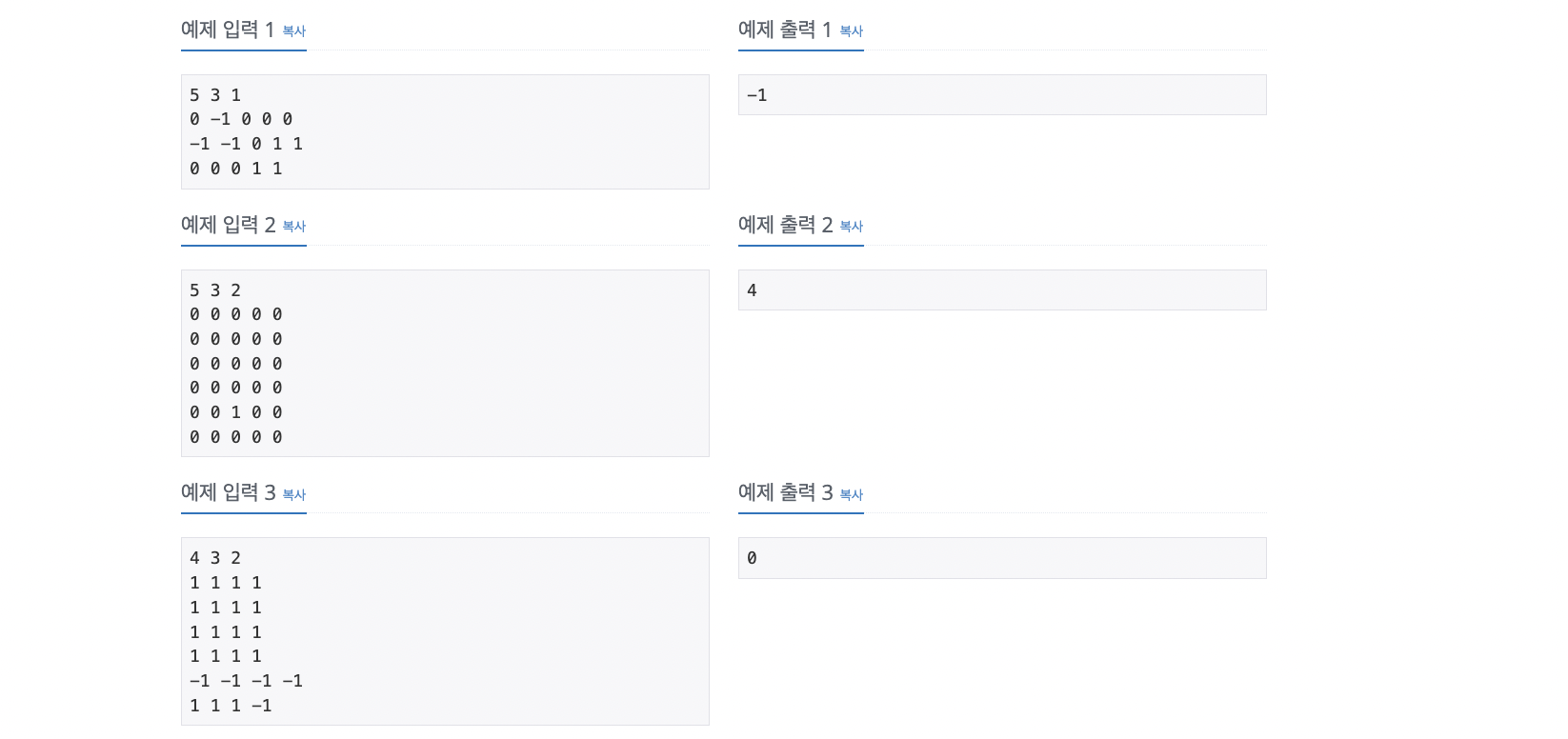 - 토마토 없음 : -1 (일부 칸에는 토마토가 들어있지 않을 수도 있다.)