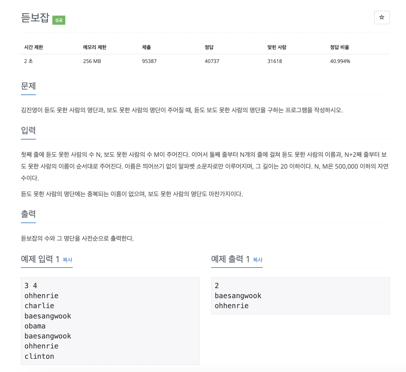 - 듣지 못한 사람 명단, 보지 못한 사람 명단이 주어진다.