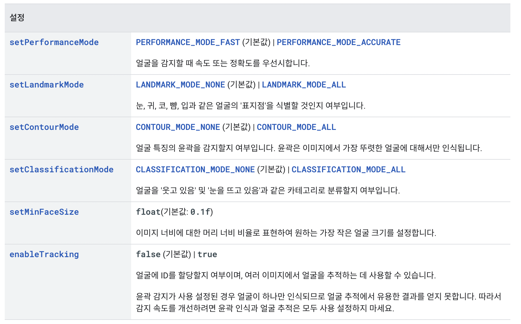 faceDetectorOption함수를 이용하여 얼굴 인식을 윙한 분류 방식(option)에 변화를 줄 수 있음
