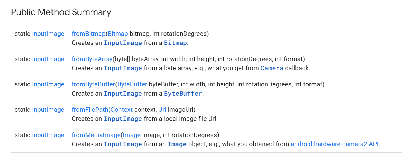 - media Image, URI, ByteBuffer/ByteArray, Bitmap 이용해서 Input Image 제작 가능