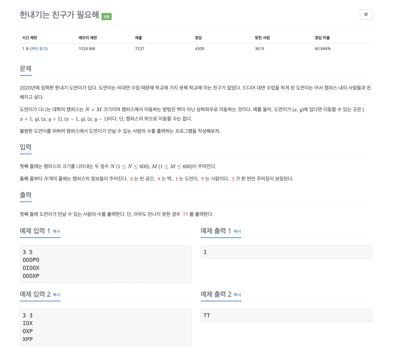 백준 21736번 문제 - 헌내기는 친구가 필요해