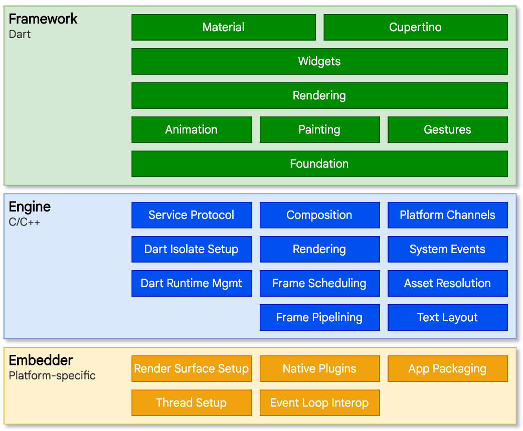 💡 Flutter(Dart code) ↔ Engine ↔ OS