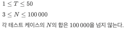 각 테스트 케이스에 대한 답을 정수 형태로 한 줄에 하나씩 출력한다.