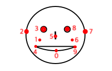 5: 코 중앙 | 6: 오른쪽 볼 | 7: 오른쪽 볼(광대) | 8: 오른쪽 눈 중앙 | 9: 오른쪽 입꼬리