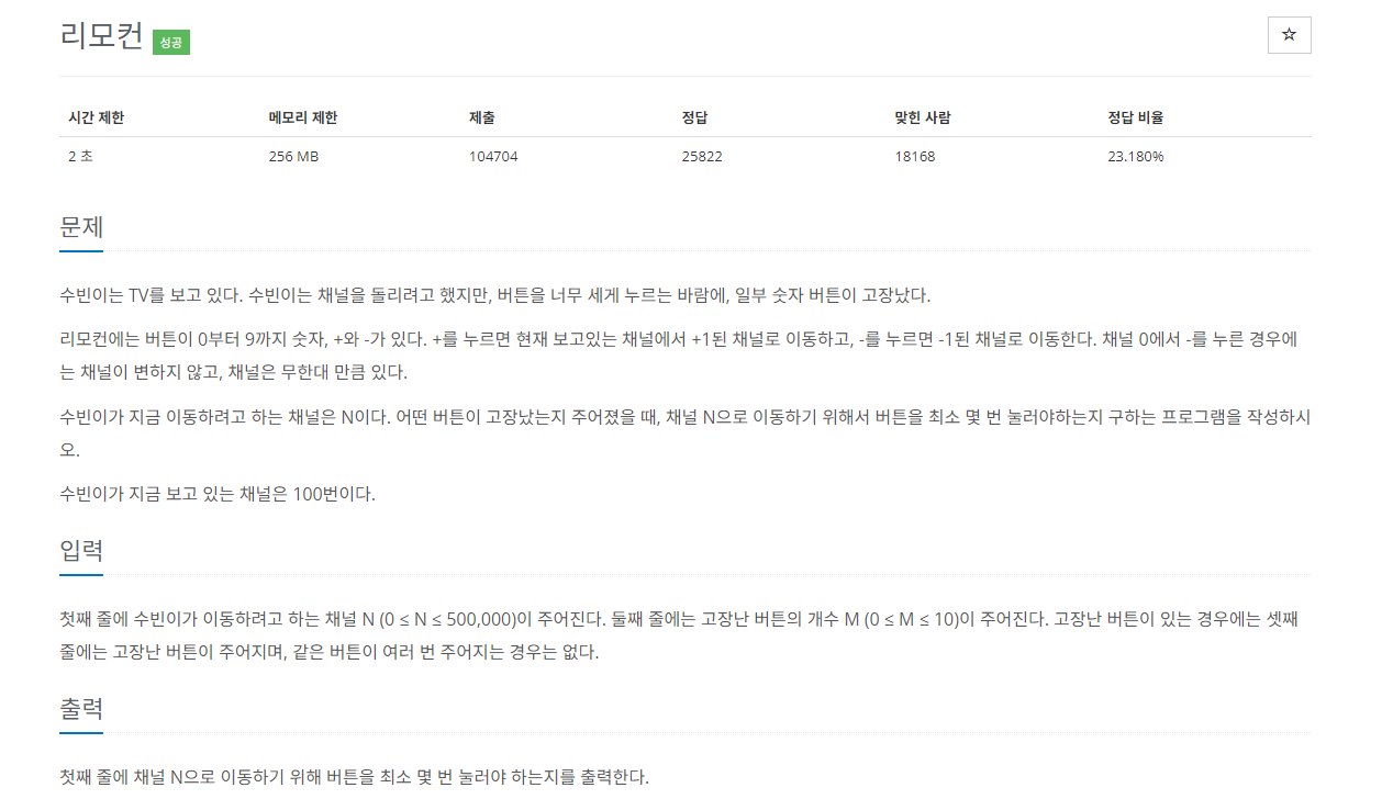 백준 1107번 문제 - 리모컨