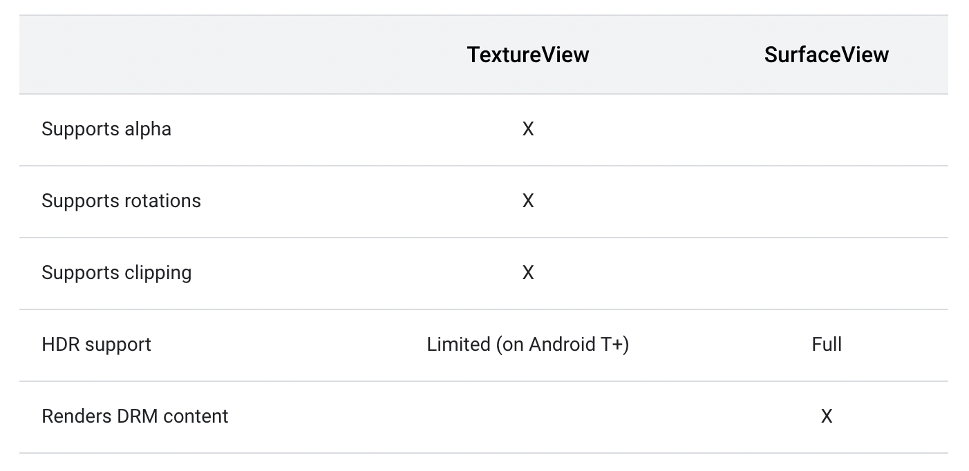 : 카메라 미리 보기, 비디오 또는 OpenGL 장면에서 오는 것과 같은 콘텐츠 스트림을 표시하는 데 사용 (View를 상속)