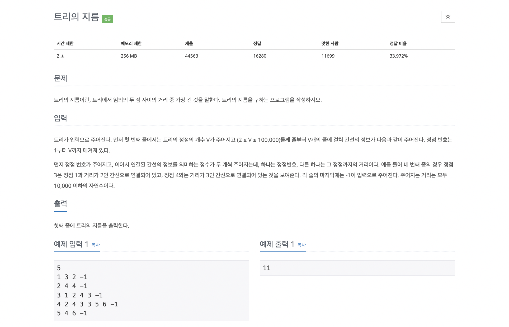백준 1167번 문제 - 트리의 지름