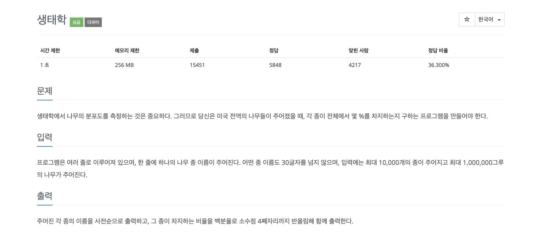 백준 4358번 문제 - 생태학